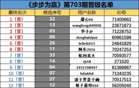 《步步为赢》第703期晋级名单公布