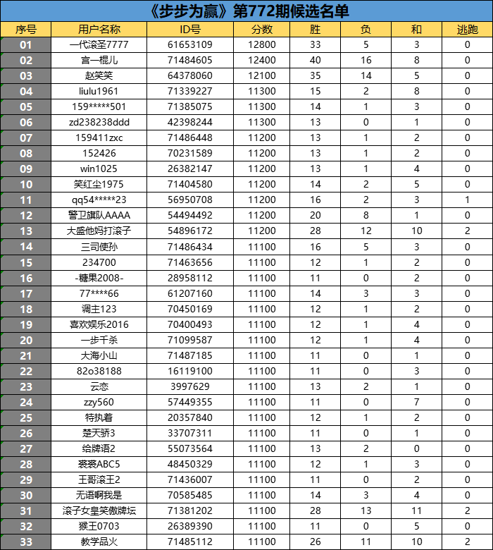 《步步为赢》第772期候选名单公布
