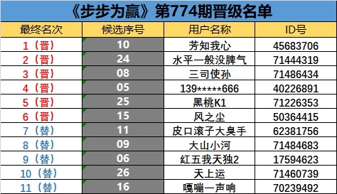 《步步为赢》第774期晋级名单公布
