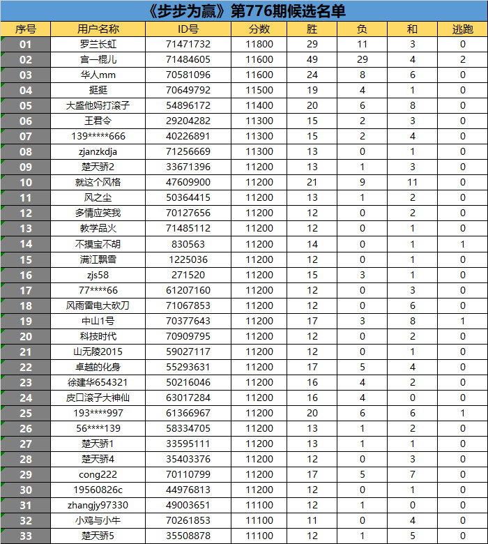 《步步为赢》第776期候选名单公布