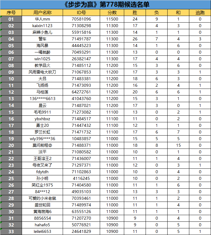《步步为赢》第778期候选名单公布