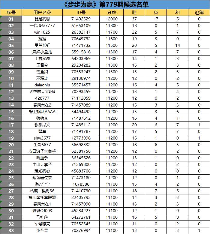 经过一周的激烈角逐,《步步为赢》第779期网络海选的33名候选选手已经揭晓。
