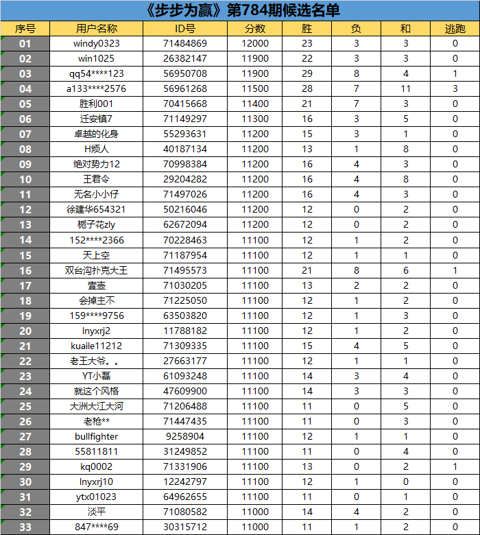 《步步为赢》第784期候选名单公布