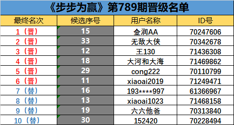 《步步为赢》第789期晋级名单公布