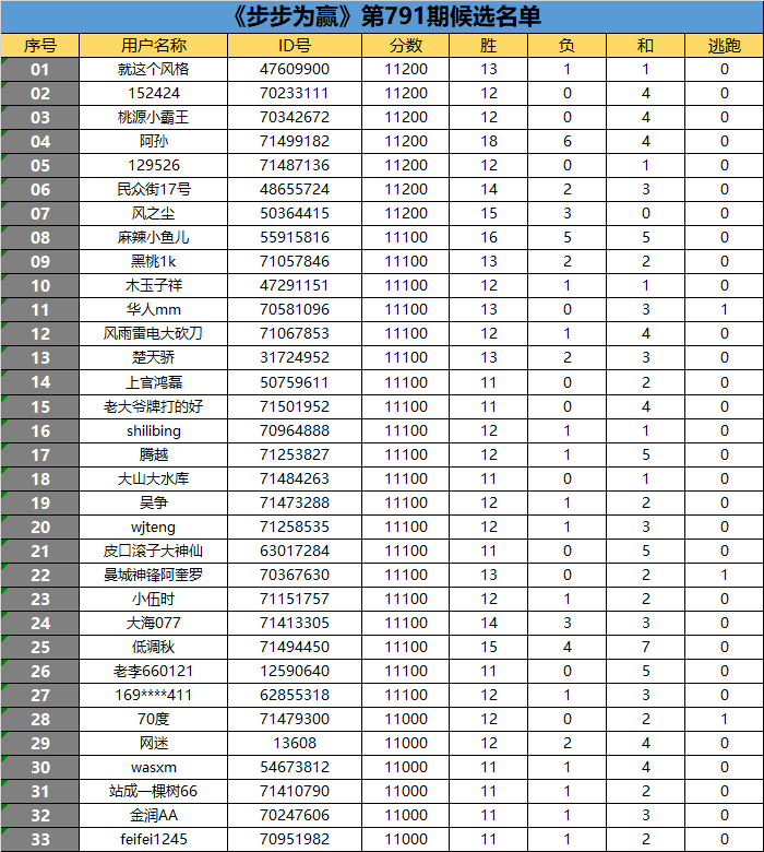 《步步为赢》第791期候选名单公布