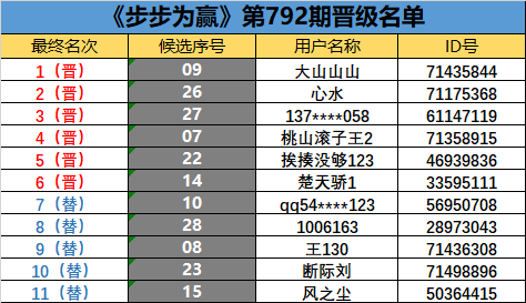 《步步为赢》第792期晋级名单公布