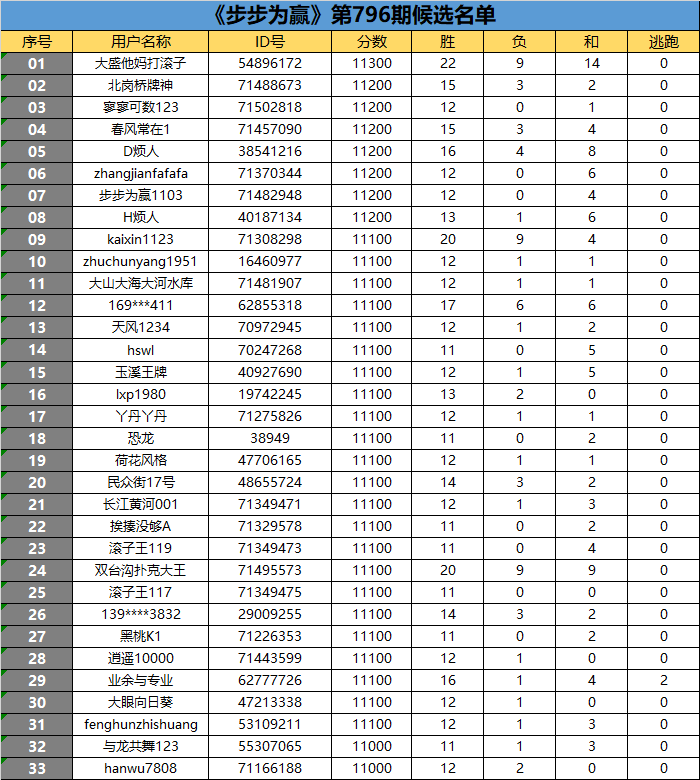经过一周的激烈角逐,《步步为赢》第796期网络海选的33名候选选手已经揭晓。