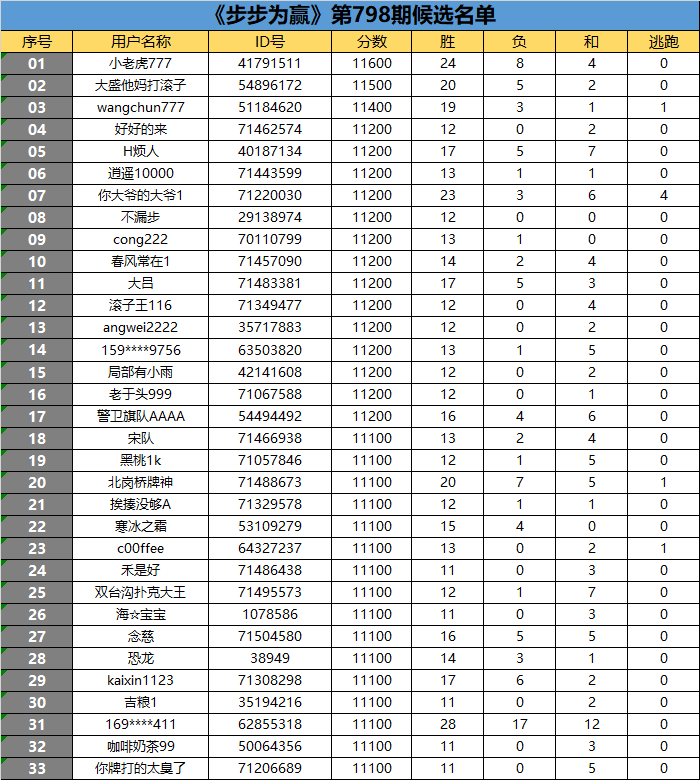 经过一周的激烈角逐,《步步为赢》第798期网络海选的33名候选选手已经揭晓。
