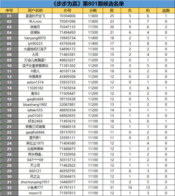 《步步为赢》第801期候选名单公布