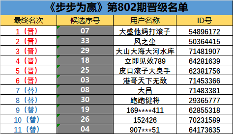 根据2023年9月14日中国福利彩票“双色球”玩法第23107开奖结果,《步步为赢》第802晋级名单已经产生。