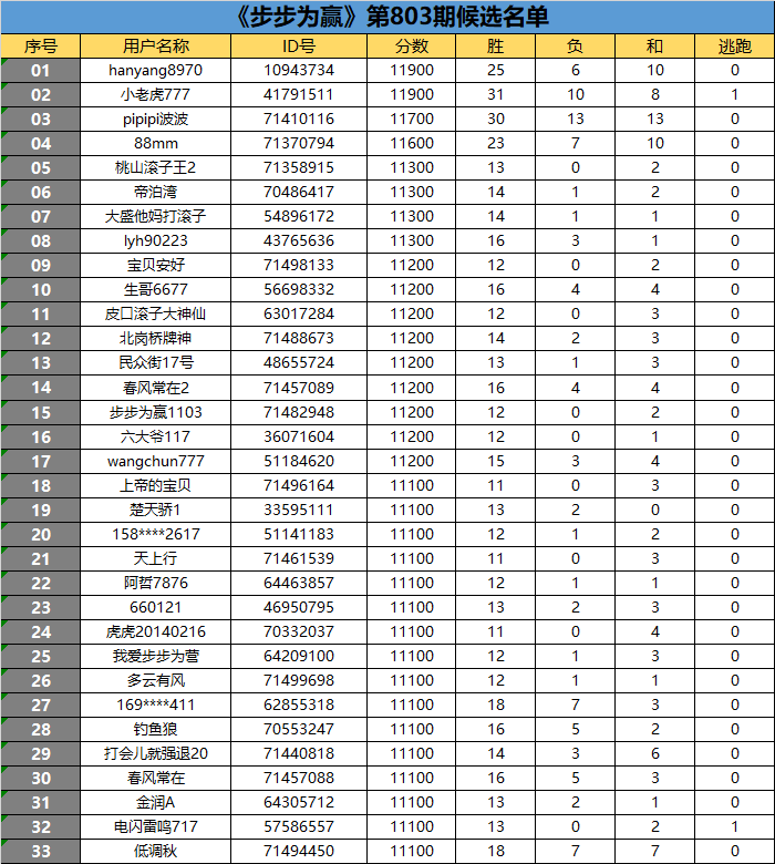 经过一周的激烈角逐,《步步为赢》第803期网络海选的33名候选选手已经揭晓。