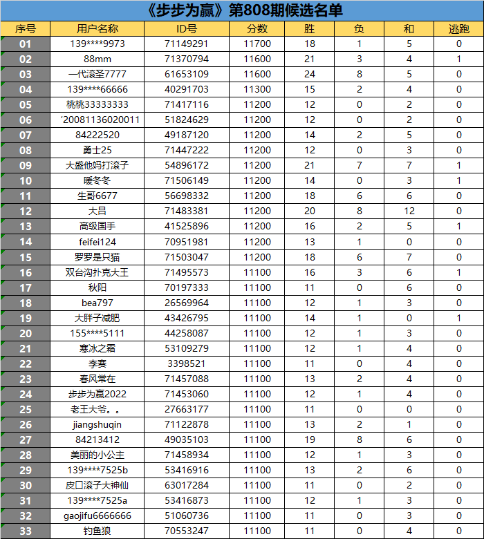 《步步为赢》第808期候选名单公布
