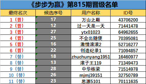 根据2023年12月14日中国福利彩票“双色球”玩法第23144开奖结果,《步步为赢》第815晋级名单已经产生。