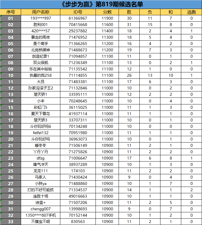 《步步为赢》第819期候选名单公布