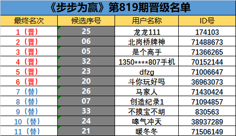 根据2024年1月11日中国福利彩票“双色球”玩法第24005开奖结果,《步步为赢》第819晋级名单已经产生。