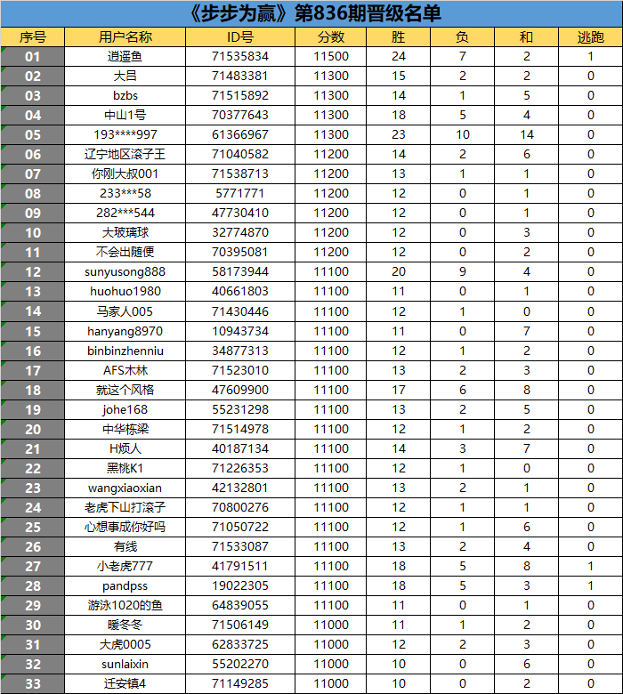 《步步为赢》第836期晋级名单公布
