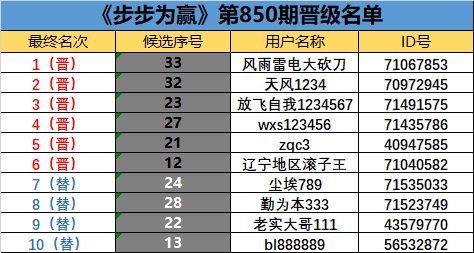 根据2024年9月5日中国福利彩票“双色球”玩法第24103开奖结果,《步步为赢》第850晋级名单已经产生。