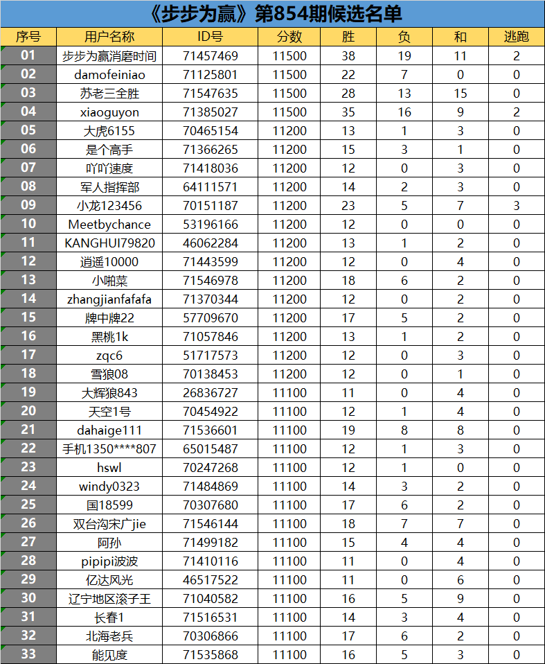 《步步为赢》第854期候选名单公布