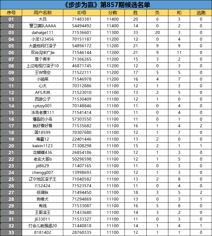 《步步为赢》第857期候选名单公布
