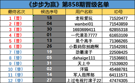 根据2024年10月31日中国福利彩票“双色球”玩法第24125开奖结果,《步步为赢》第858晋级名单已经产生。