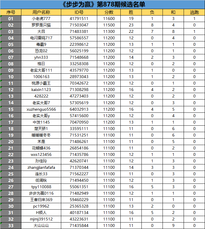 经过一周的激烈角逐,《步步为赢》第878期网络海选的33名候选选手已经揭晓。
