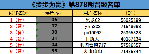 《步步为赢》第878期晋级名单公布