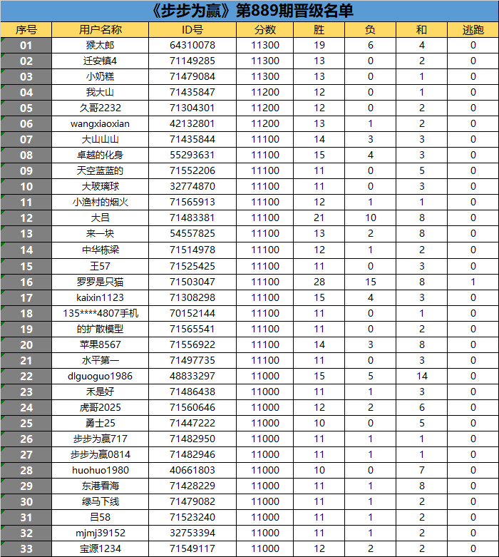 《步步为赢》第889期晋级名单公布