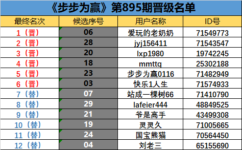 《步步为赢》第895期晋级名单公布