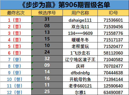 根据2025年10月2日中国福利彩票“双色球”玩法第25113奖结果,《步步为赢》第906期晋级名单已经产生。