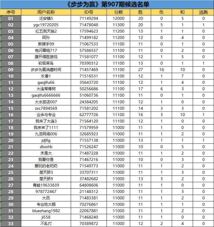 《步步为赢》第907期候选名单公布