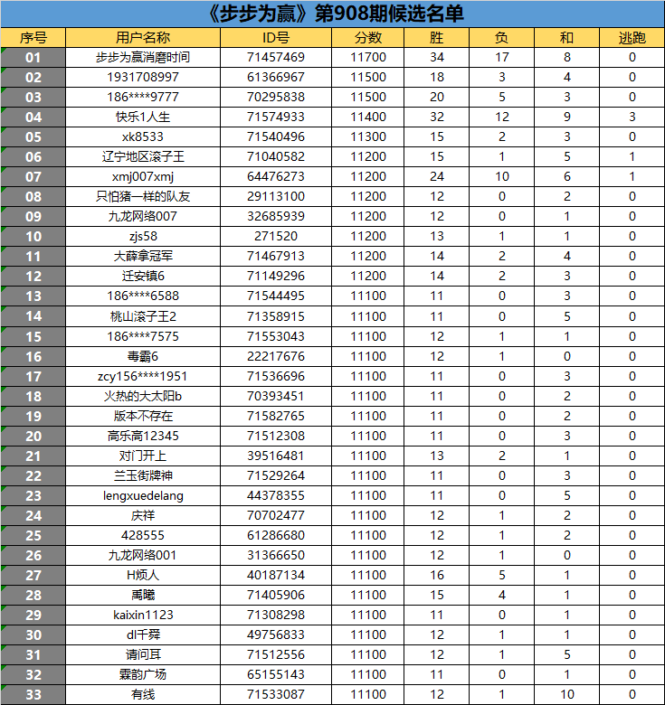 《步步为赢》第908期候选名单公布