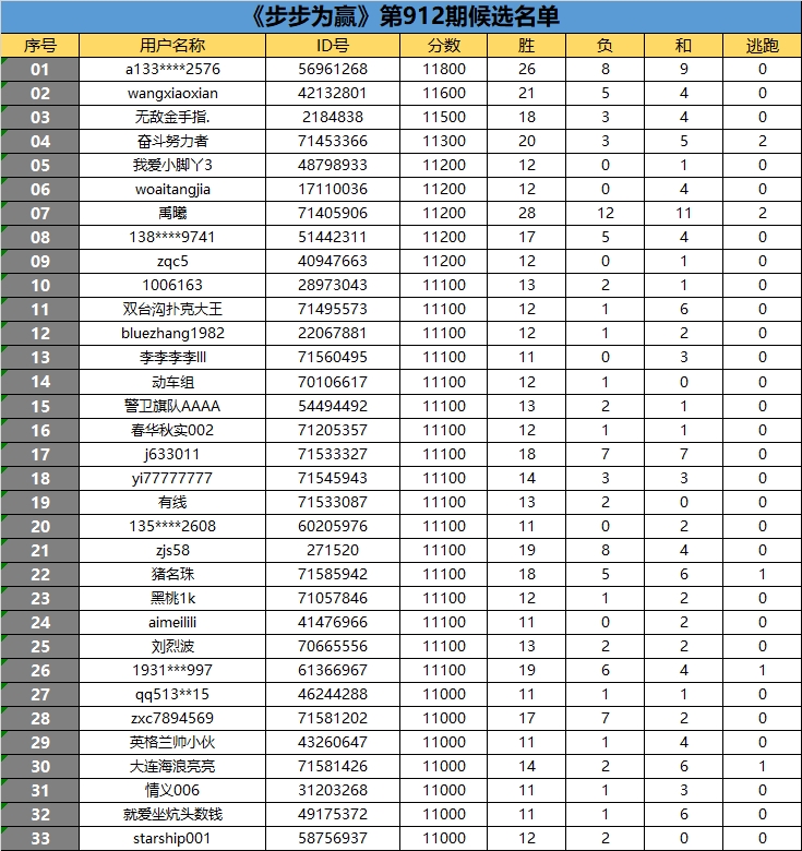 《步步为赢》第912期候选名单公布