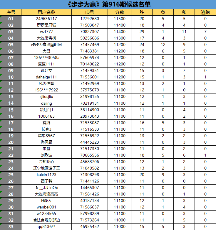 《步步为赢》第916期候选名单公布