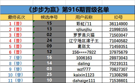 根据2025年12月11日中国福利彩票“双色球”玩法第25143奖结果,《步步为赢》第916期晋级名单已经产生。